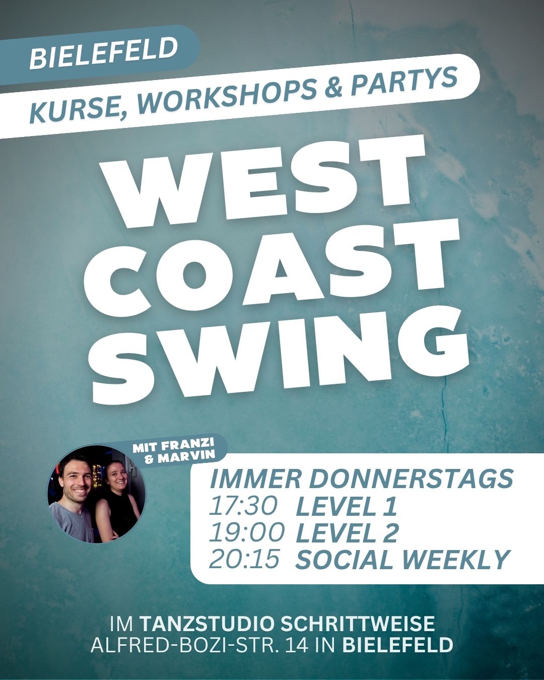 In Bielefeld West Coast Swing tanzen? Das geht bei uns! Hier ein Überblick über unser Angebot: